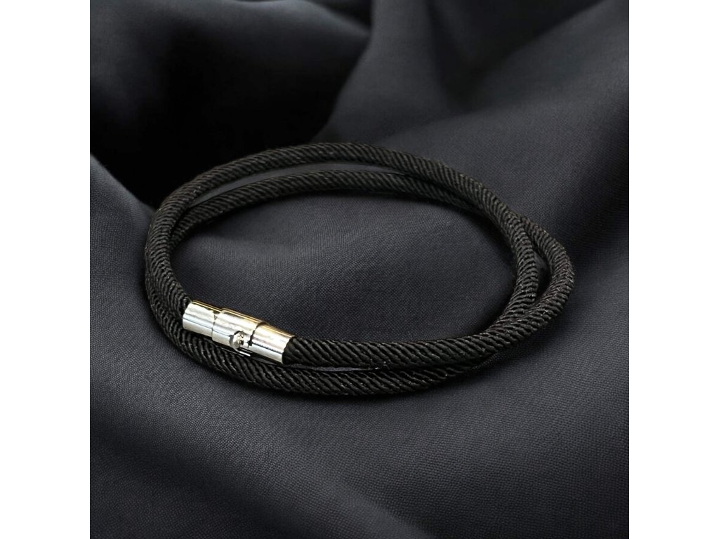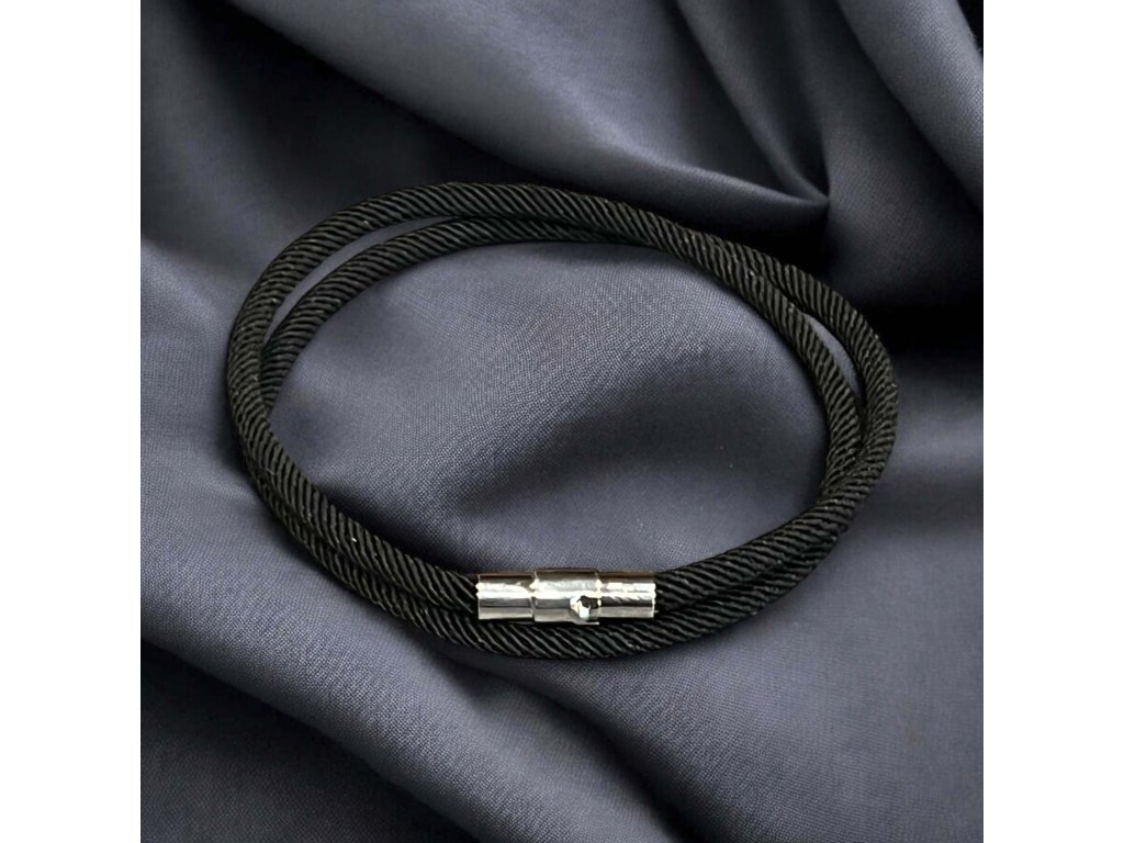 Náramek minimalistický provázkový s magnetickým stříbrným zapínáním s pojistkou - DVOJITÝ