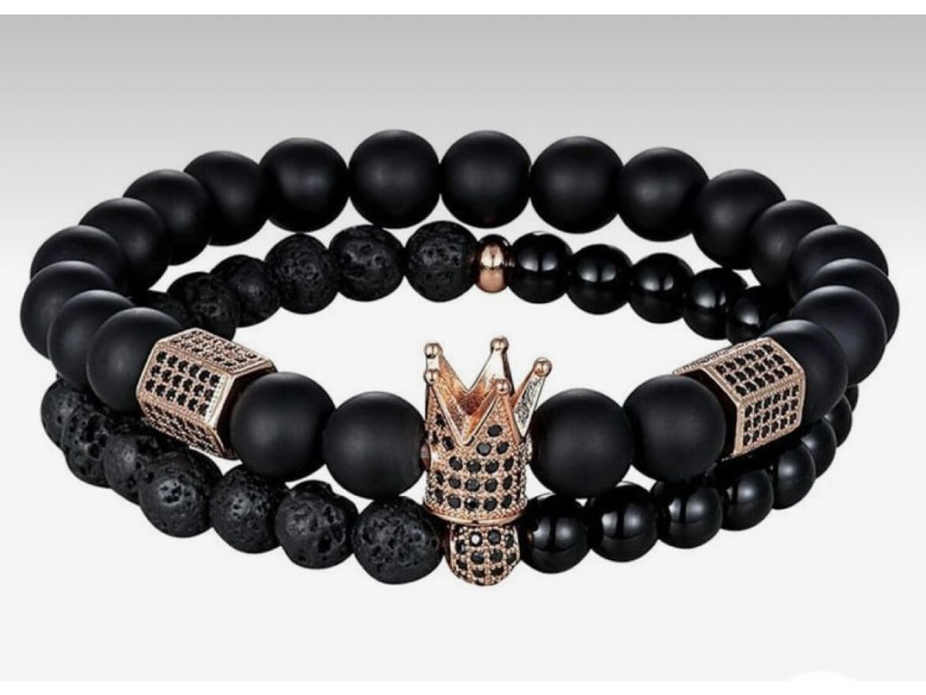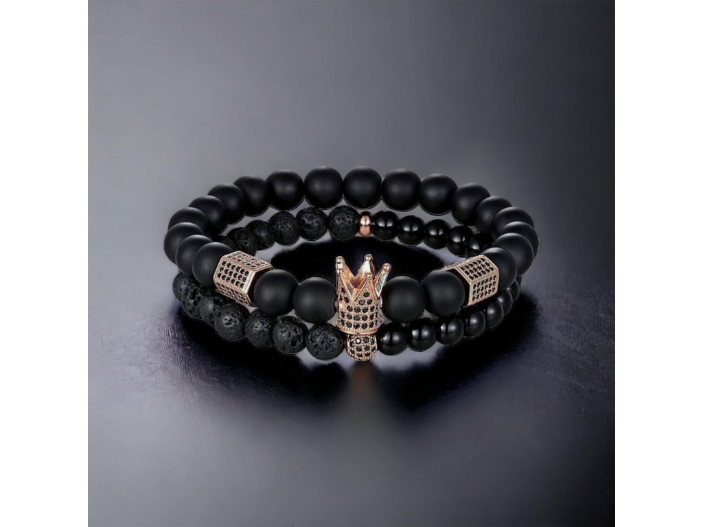 Kombinace lávy a onyxu, kombinace korunky, rozdělovačů a kuličky se zirkony, kombinace elegance a jednoduchosti.